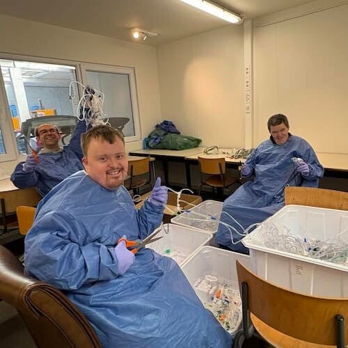 De Loods De Nekker vzw is een atelier in Mechelen waar mensen met een beperking samen met hun begeleiders aan de slag gaan met circulaire recyclageprojecten. Ze geven gebruikte materialen uit ziekenhuizen – zoals sterilisatiedoeken, kunststof trays en andere hoogwaardige plastics – een tweede leven.